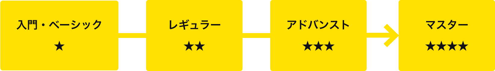 入門とベーシックは初心者向け、レギュラー、アドバンスト、マスターは経験者向けのクラスです。