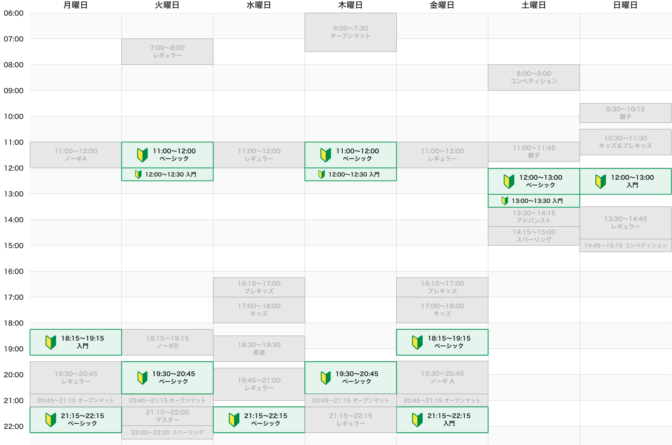 トライフォースのブラジリアン柔術クラスには、以下の5種類があります。